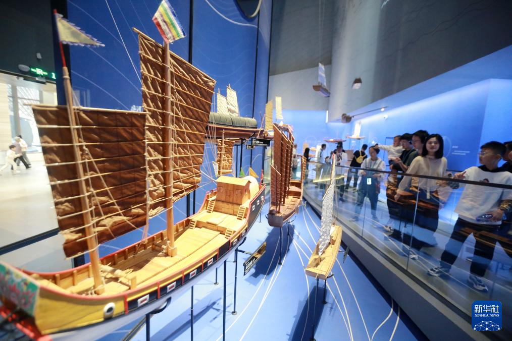 10月2日,游客在江苏扬州中国大运河博物馆参观。