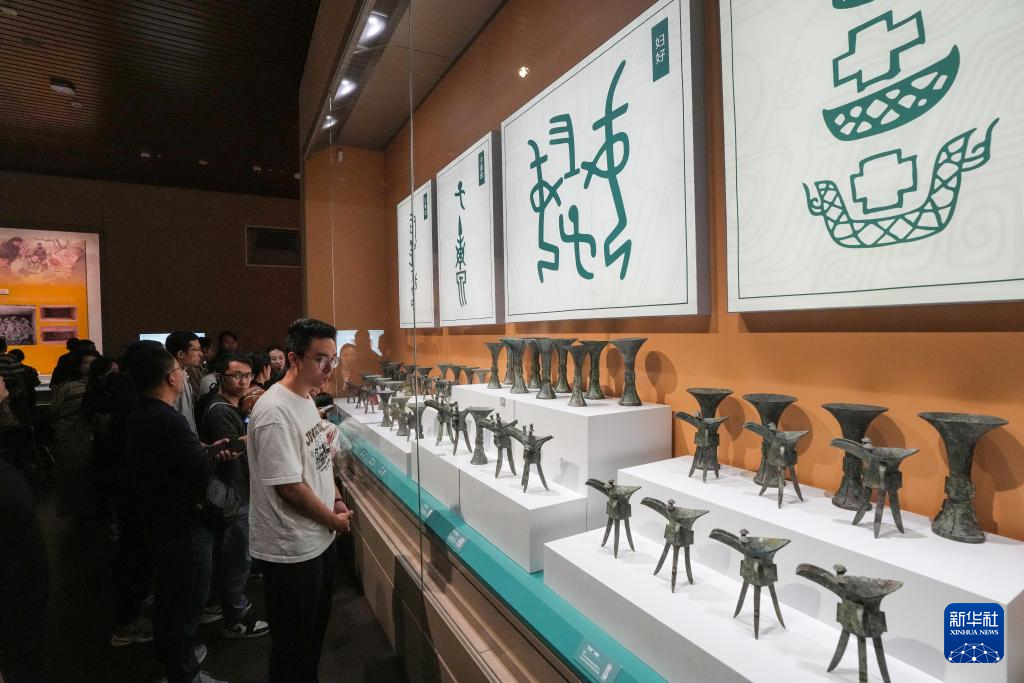 10月1日,游客在河南省安阳市殷墟博物馆新馆参观。