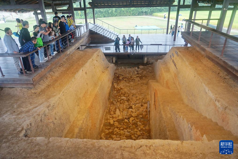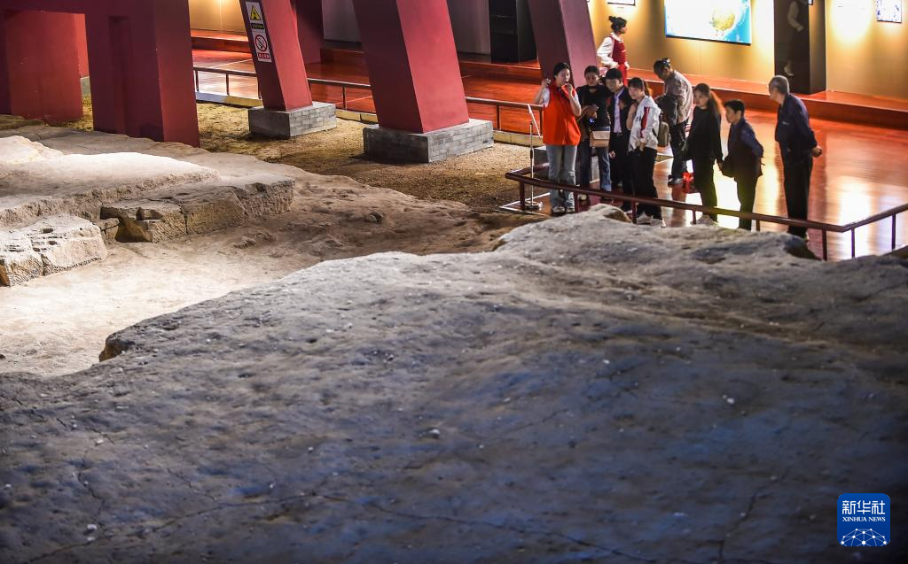 10月2日,游客在河南省洛阳市定鼎门遗址博物馆参观隋唐洛阳城定鼎门地下原址遗迹展示区。