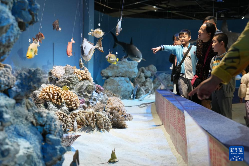 10月4日,家长带着孩子在位于重庆市北碚区的重庆自然博物馆参观。