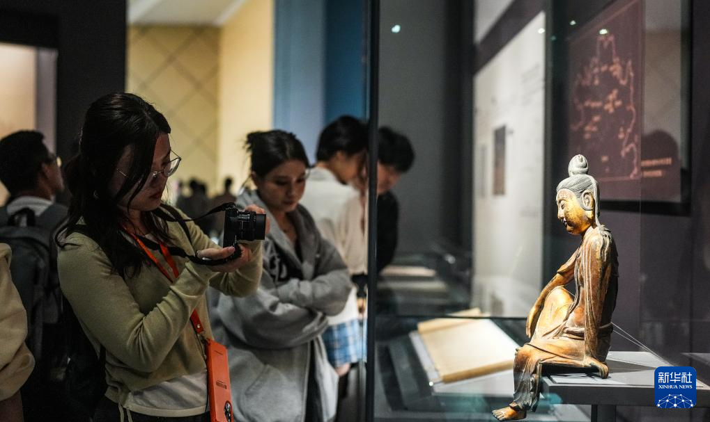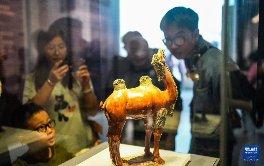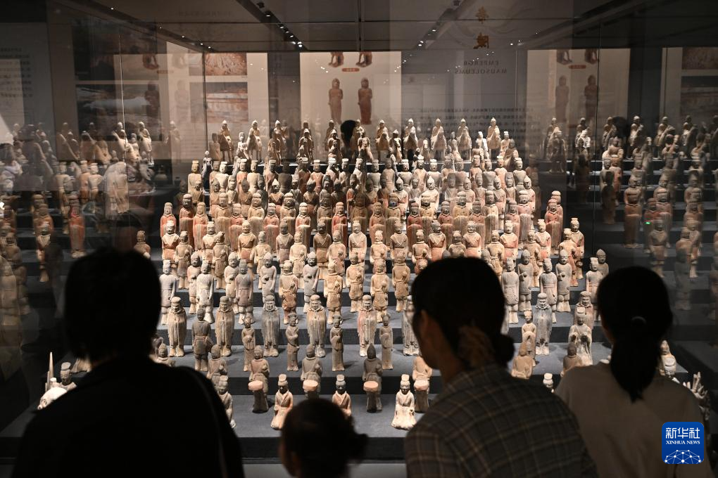 10月4日,游客在位于河北省邯郸市磁县的北朝考古博物馆内观看文物陈列。