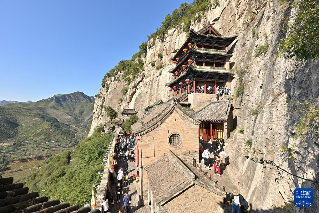 10月3日,游客在位于河北省邯郸市涉县的娲皇宫景区游览。