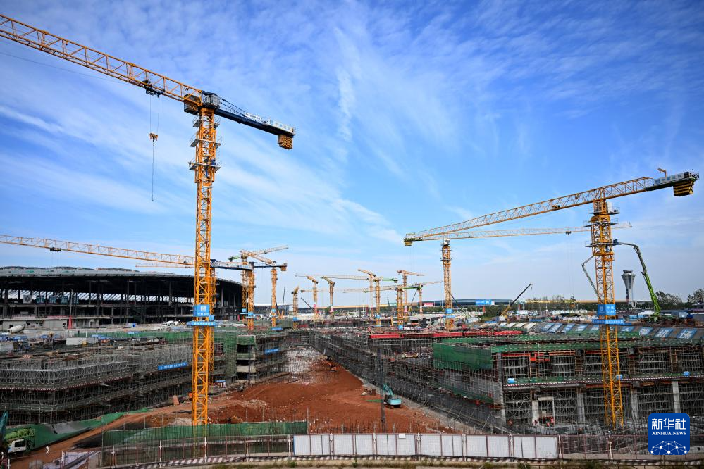 这是10月5日拍摄的合肥新桥国际机场综合交通中心项目建设现场。