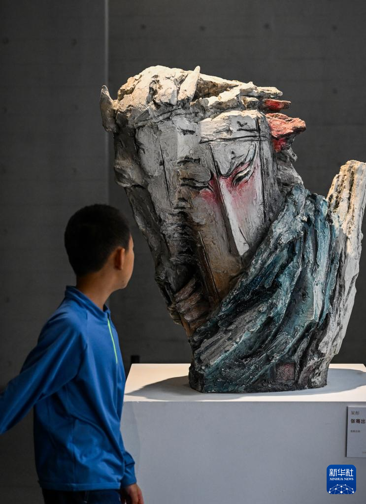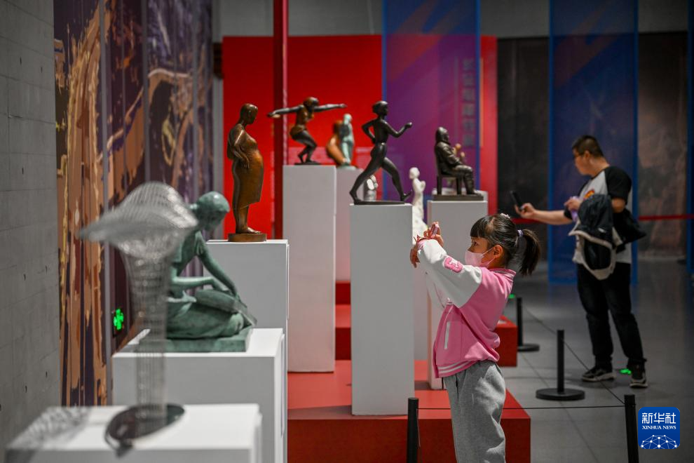 10月6日,一名小朋友在呼和浩特雕塑艺术馆参观。