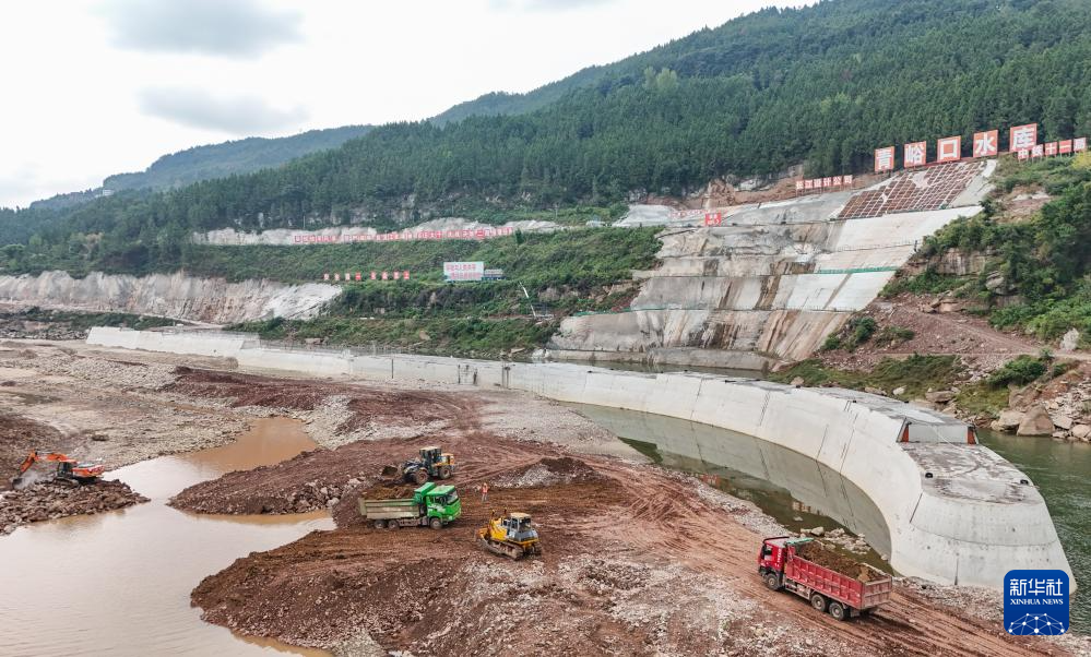 这是10月6日在四川省巴中市通江县境内拍摄的青峪口水库建设现场(无人机照片)。该水库是国家150项重大水利工程之一。