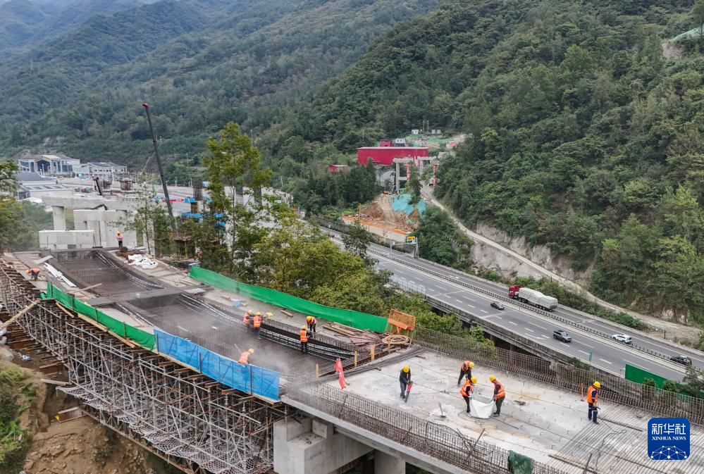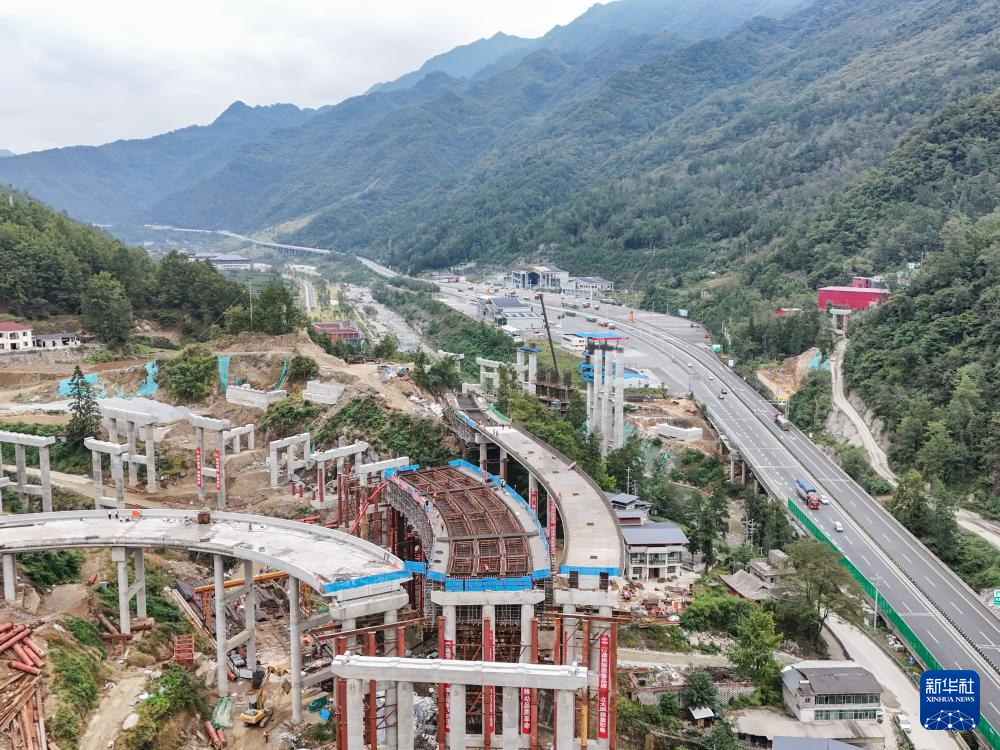 这是10月6日在四川省巴中市南江县境内拍摄的米仓大道关坝互通建设现场(无人机照片)。米仓大道是四川省交通建设重点项目。