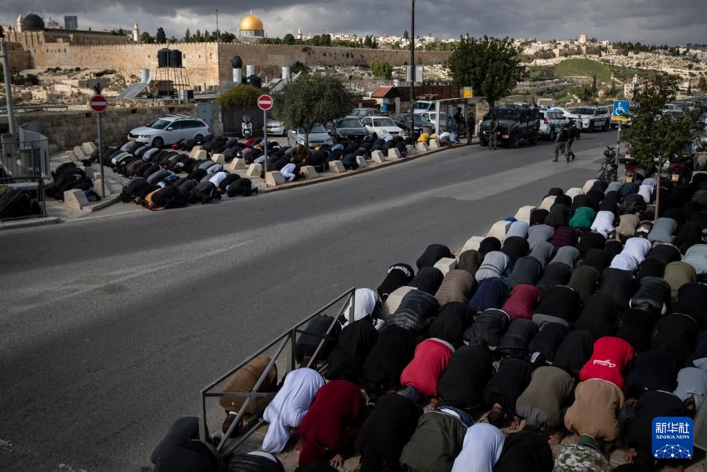 2024年1月5日,人们在耶路撒冷老城周边进行主麻日聚礼。新一轮巴以冲突爆发以来,以色列警方于每周主麻日期间加强对耶路撒冷老城周边的管控措施。