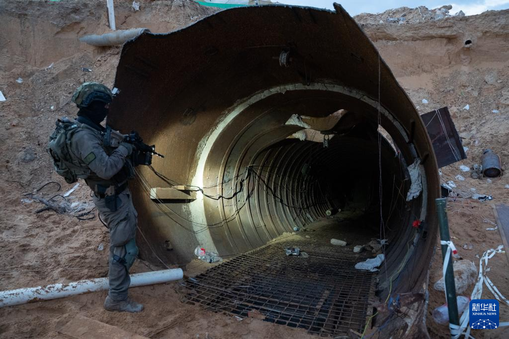 这张以色列国防军2023年12月17日发布的照片显示,以军地面部队在加沙地带发现一处巴勒斯坦伊斯兰抵抗运动(哈马斯)的大型地下隧道。