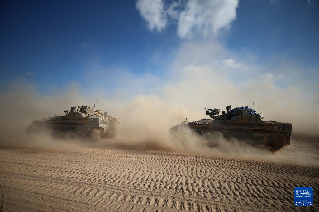 这是2024年5月29日在以色列与加沙边境以方一侧拍摄的以军部队。