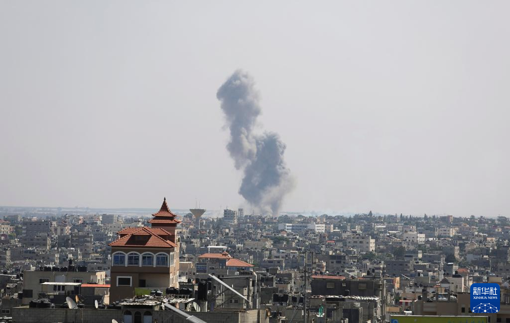 这是2023年10月7日在加沙地带南部城市拉法拍摄的以色列军队空袭造成的浓烟。