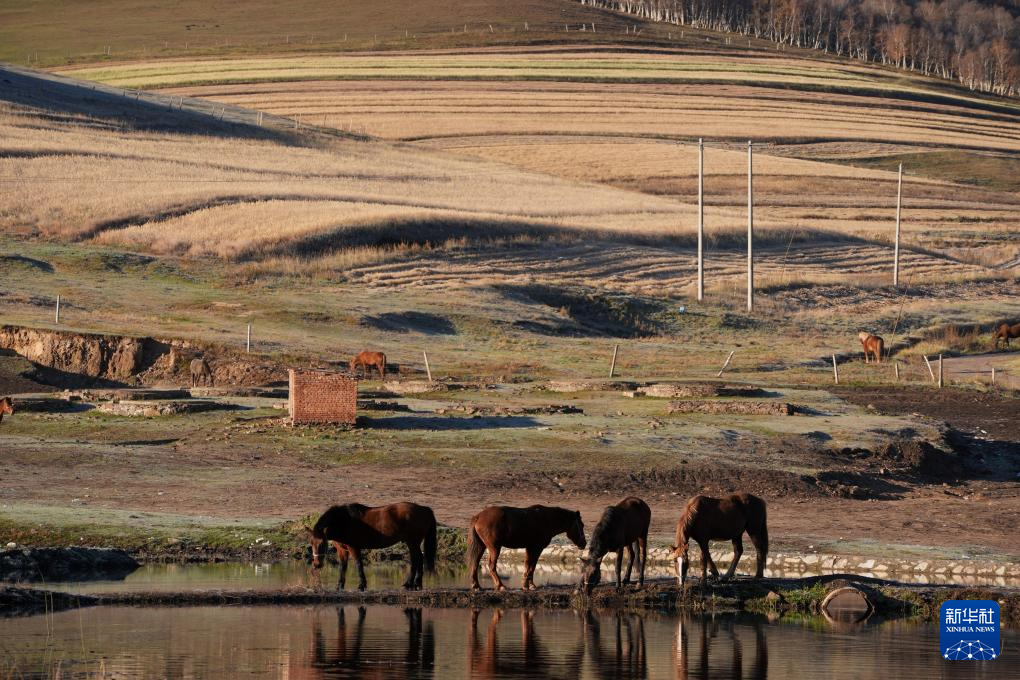 河北省承德市丰宁满族自治县坝上地区的清晨,阳光给山川河湖披上斑斓秋色,风光怡人。