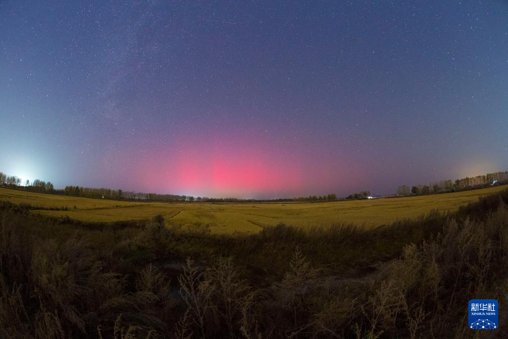 这是10月8日凌晨在黑龙江省佳木斯市富锦市大榆树镇拍摄的极光。