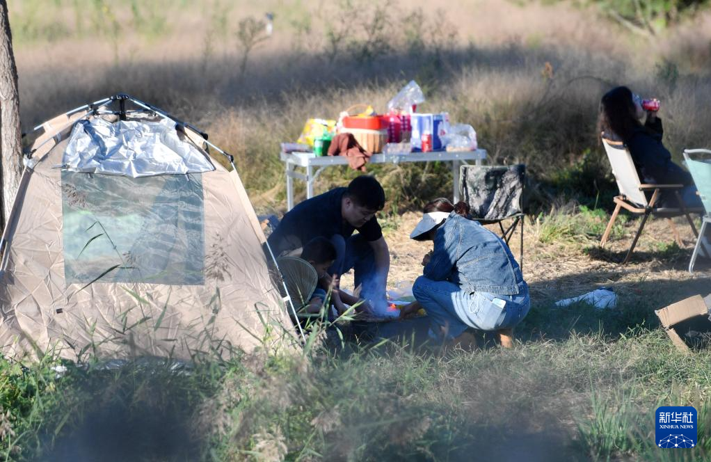 国庆假期,“露营”再次成为社交平台的高频词,也成为不少游客假期放松休闲的选择。人们纷纷来到户外,以露营的方式亲近自然、融入风景。