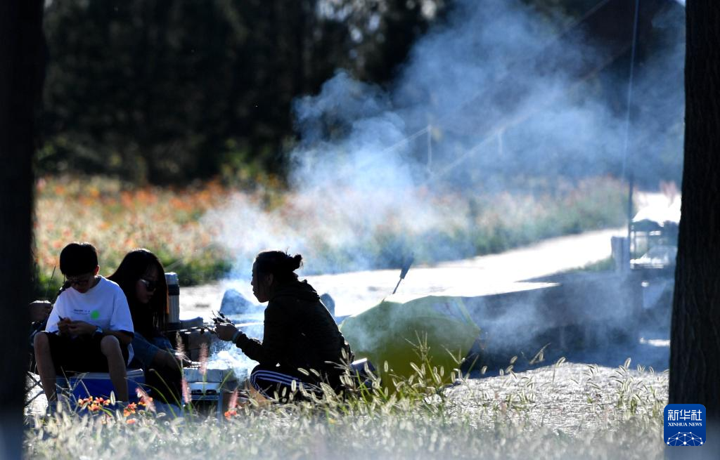 露营者在河北省石家庄市滹沱河生态区露天烧烤(10月2日摄)。与此同时,公园广播不断播放着禁止烧烤、禁止用火的告示。