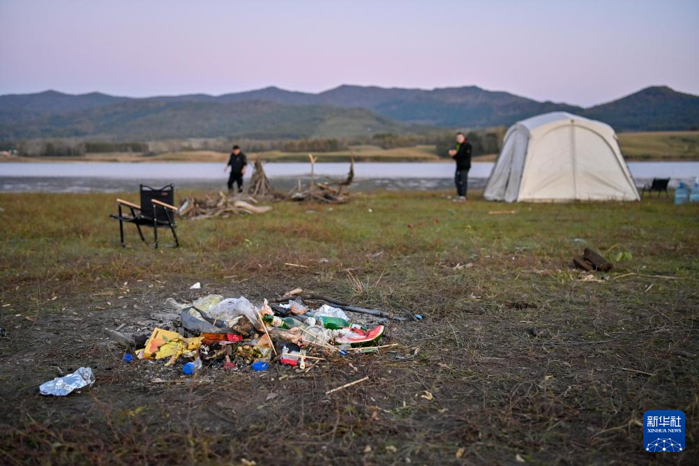 在辽宁沈阳一处露营地,垃圾被随意丢弃(10月4日摄)。