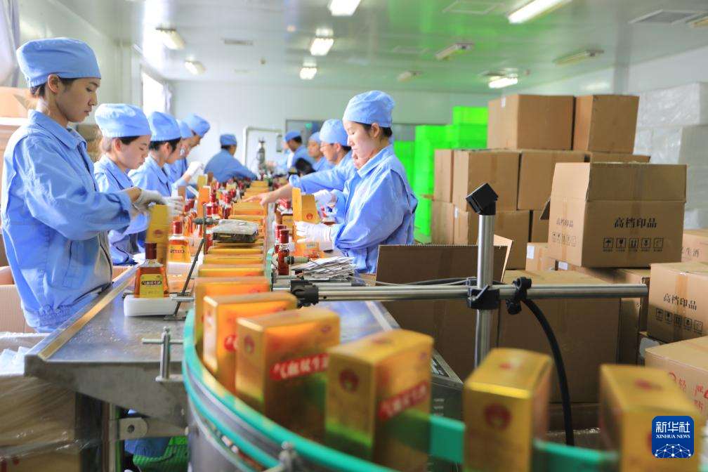 10月8日,在位于云南腾冲经济技术开发区的云南腾冲东方红制药有限公司,工人在包装保健药酒。