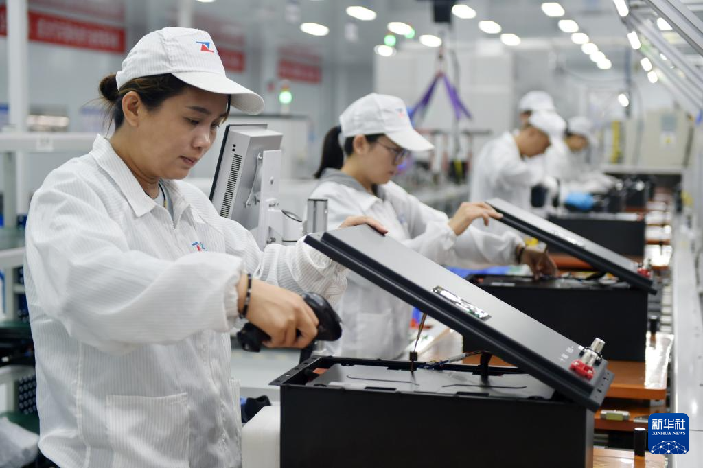 10月8日,位于河南省沁阳市经济开发区的一家新能源企业,工人在锂电池生产线上作业。