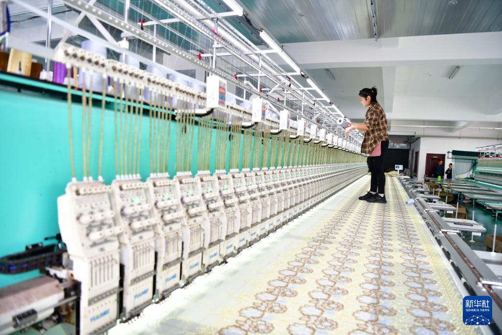 10月8日,工人在浙江省建德经济开发区一家全自动绣花生产车间作业。