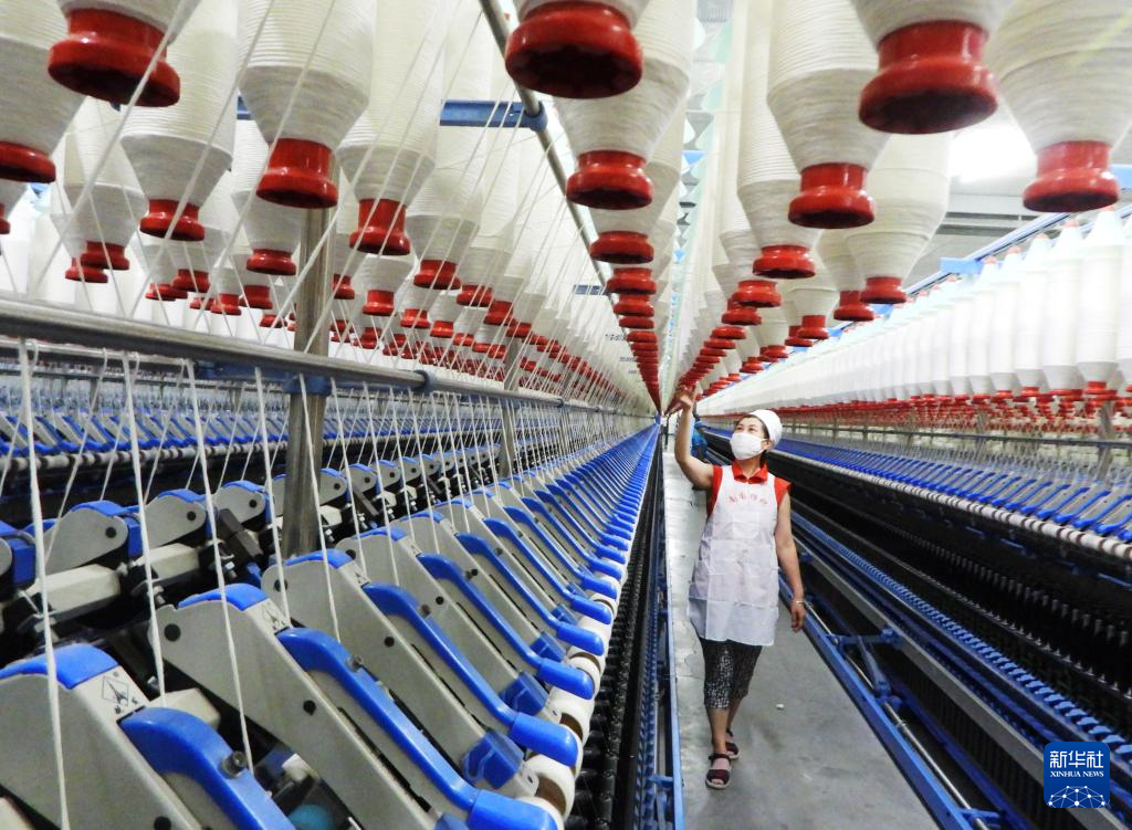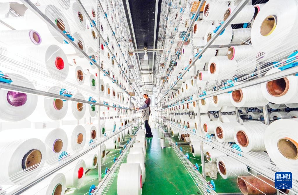 10月8日,工人在河北省遵化市高强化纤有限公司车间工作。