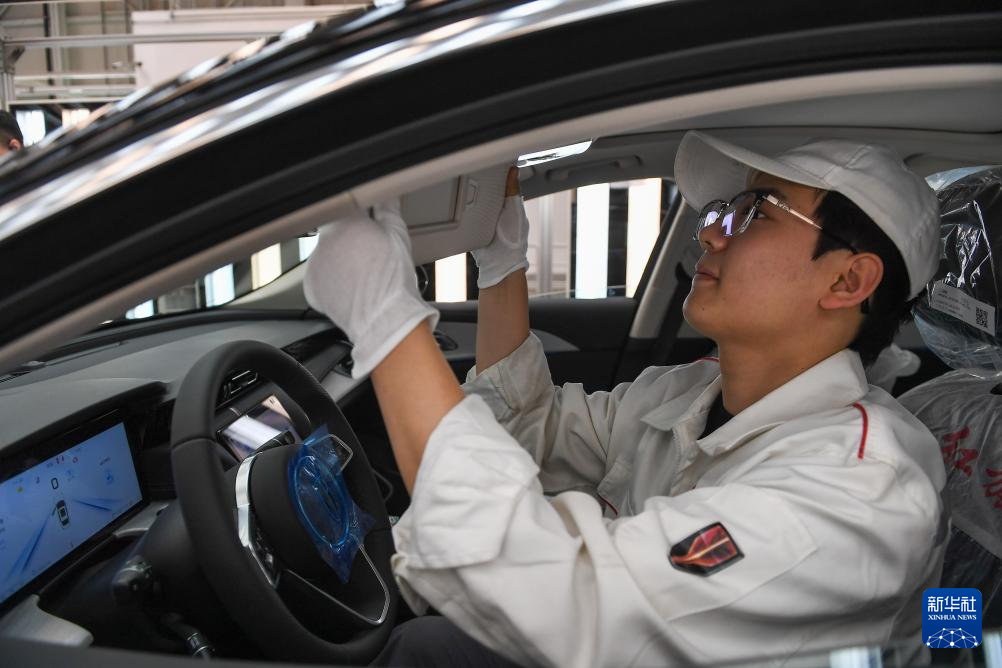 10月8日,工人在位于吉林长春的一汽红旗制造中心繁荣厂区总装车间检查车辆。