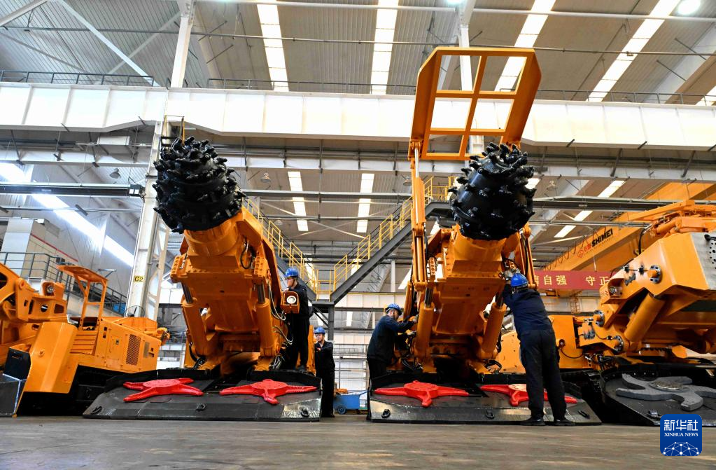 10月8日,在河北石家庄装备制造产业园,技术人员在石家庄煤矿机械有限公司装配车间调试装备。