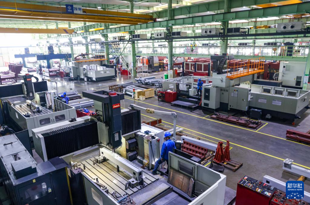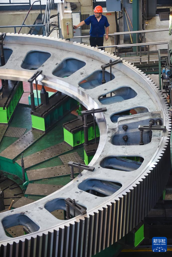 10月8日,工人在位于河南省洛阳市的中信重工数控车间内加工超大型矿用大齿轮产品。