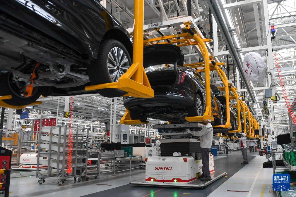 10月8日,工人在位于吉林长春的一汽红旗制造中心繁荣厂区总装车间装配车辆。