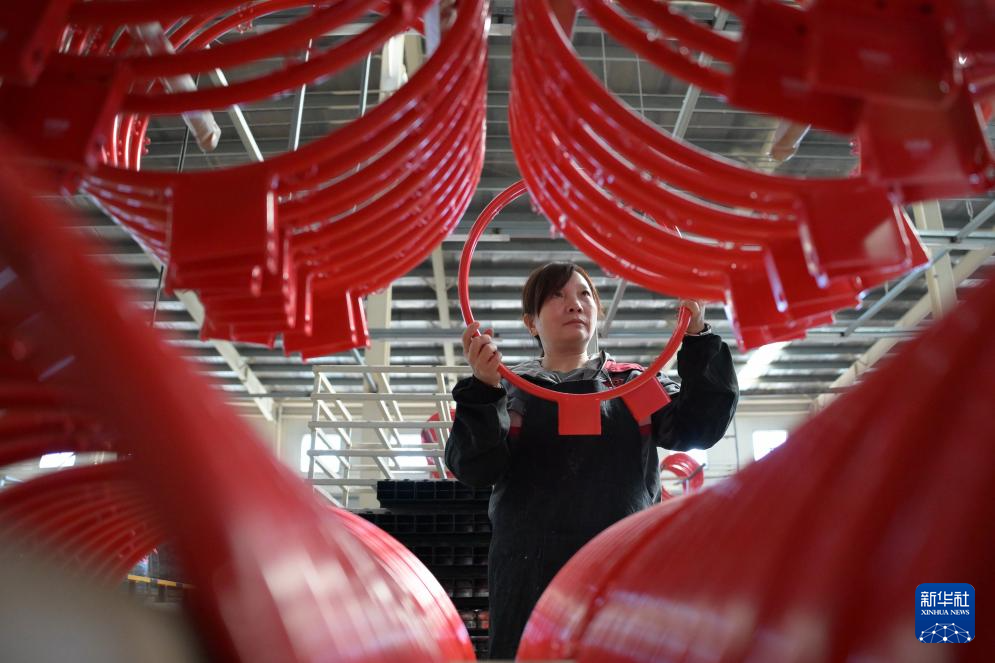 10月8日,河北唐山辰阳运动器材有限公司工人在生产体育器材。
