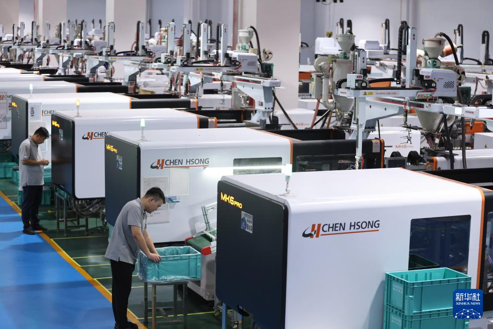 10月8日,在位于浙江省湖州市德清县乾元镇的浙江晶屹实业有限公司全自动设备制造车间,工人在香水瓶盖生产车间忙碌。