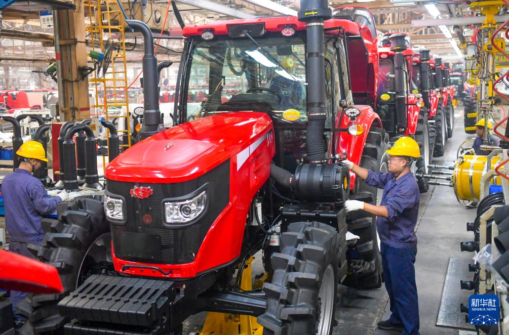 10月8日,工人在河南省洛阳市一家拖拉机生产企业车间忙碌。