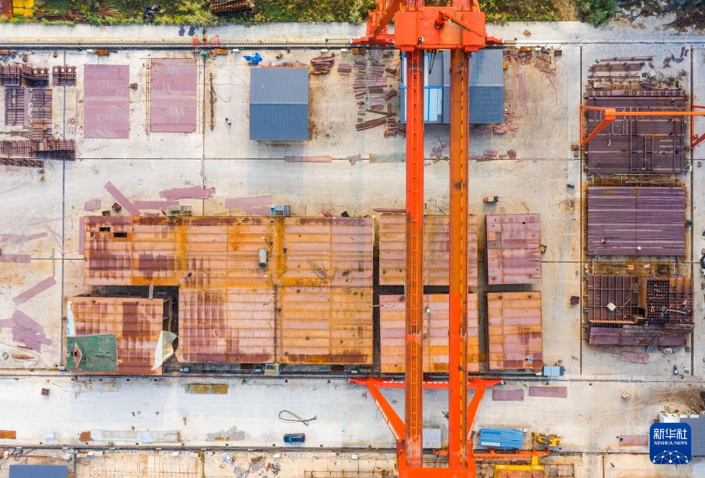 10月8日,在三峡大坝附近的湖北省秭归县,造船工人在船舶建造基地内忙碌(无人机照片)。