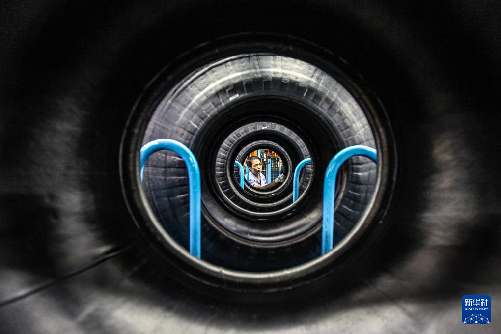 10月8日,在河南省焦作市博爱县河南天基轮胎有限公司,工人在进行生产工作。