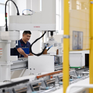 10月9日,在天津市云驱科技有限公司,生产线上的员工在组装燃料电池控制器。