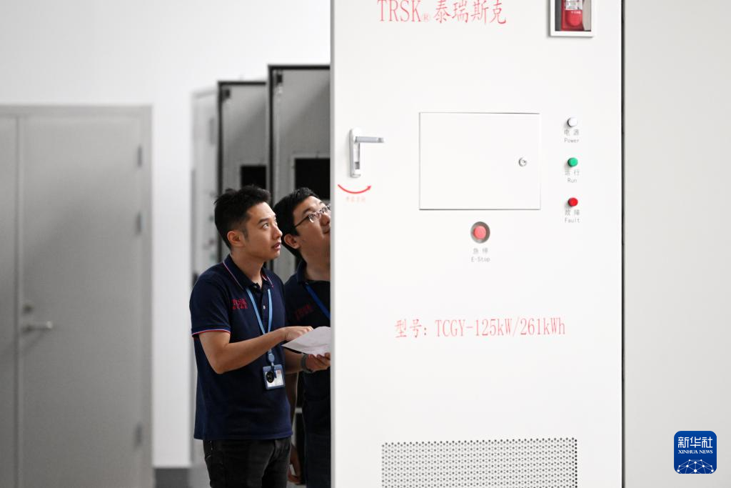 10月9日,在天津泰瑞斯克储能科技有限公司,员工在调试设备。