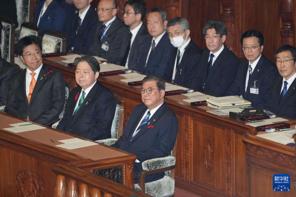 10月9日,日本首相石破茂(前排右)出席在首都东京举行的众议院全体会议。