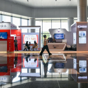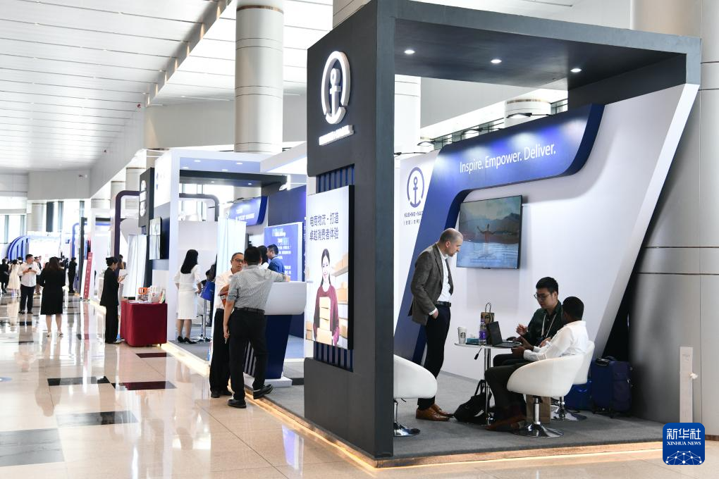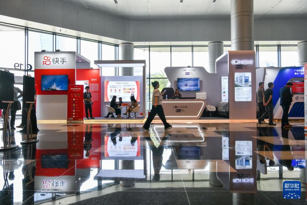 10月9日,与会者在企业展示区参观。