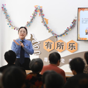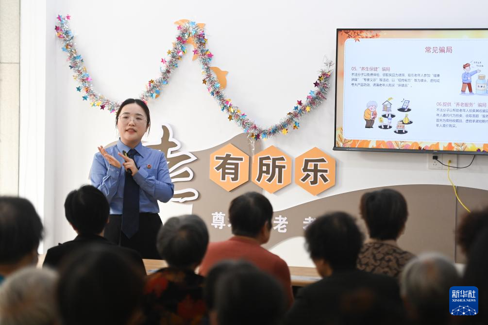 在重阳节来临之际,浙江省湖州市吴兴区人民检察院的检察官来到飞英街道米行街社区,为老人们带来一堂普法课,增强老人日常防范诈骗的意识。