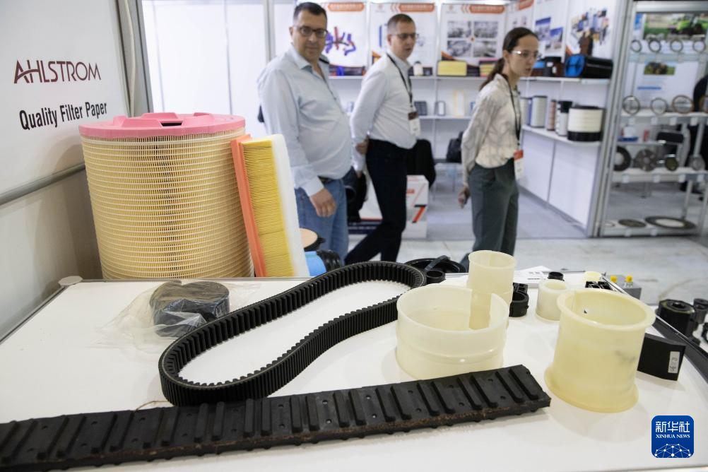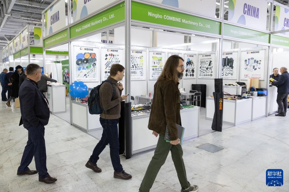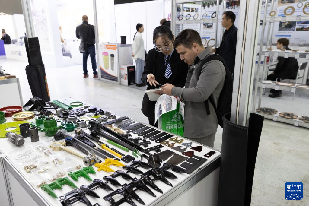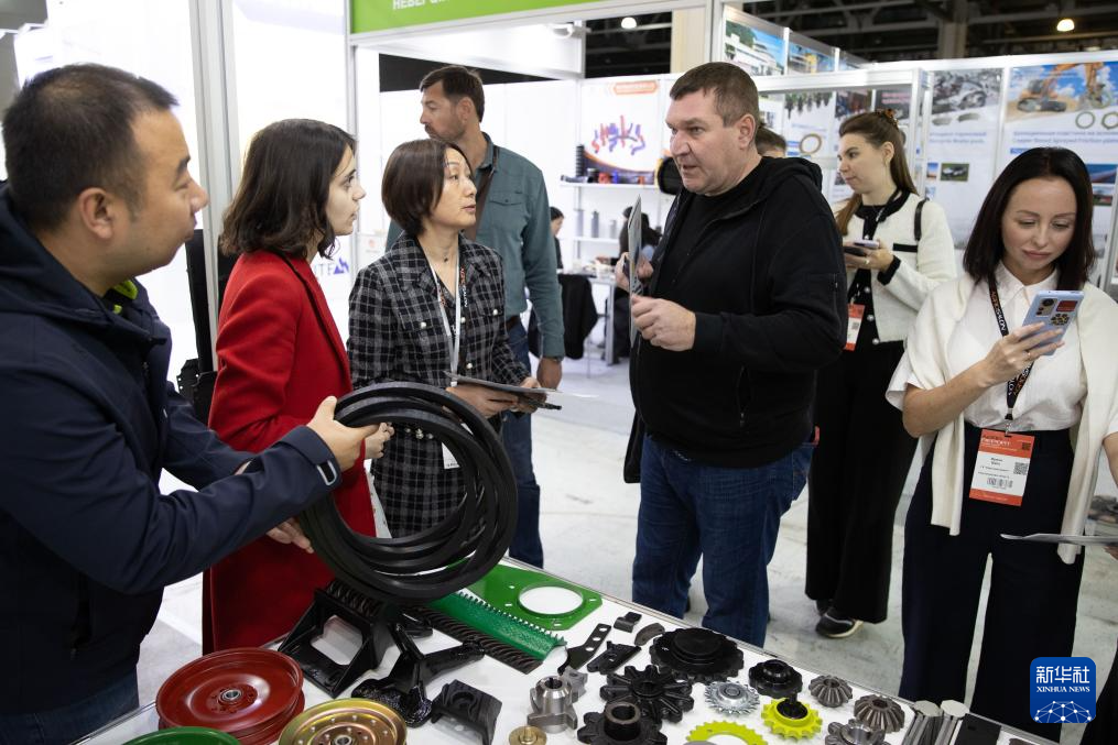 10月9日,在俄罗斯莫斯科州,参展商向观众介绍中国企业生产的农机零部件。