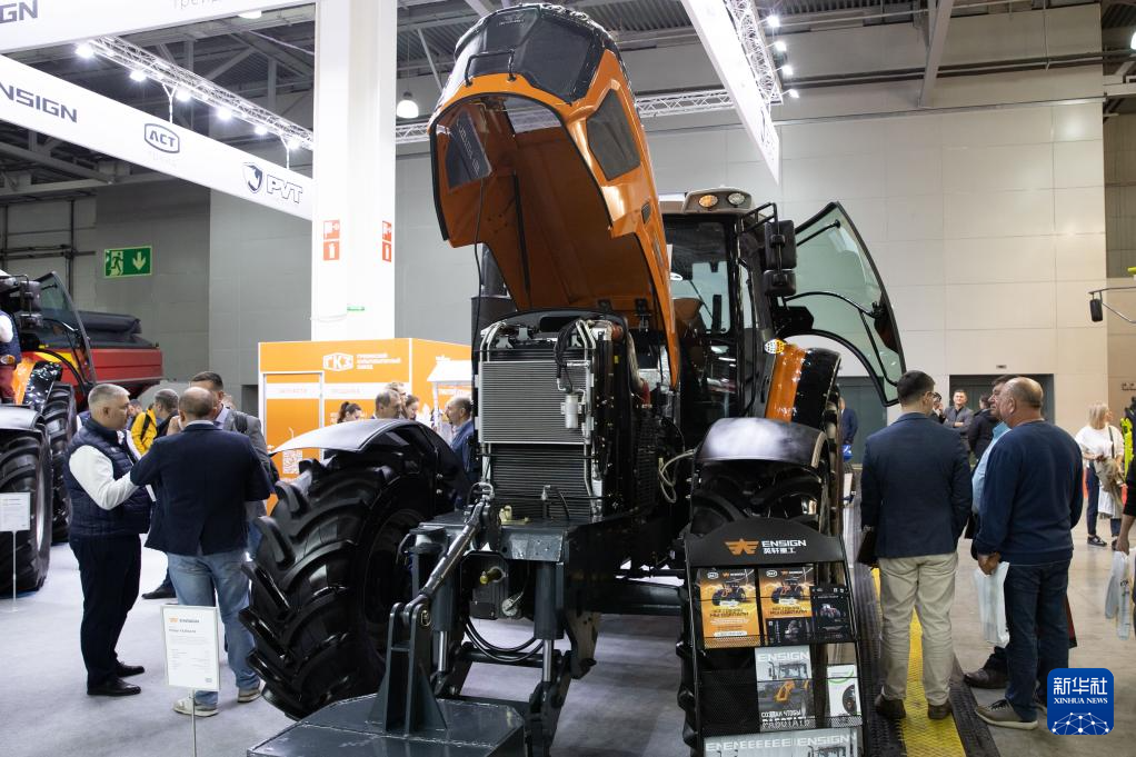 10月9日,在俄罗斯莫斯科州,人们参观中国企业生产的农机产品。