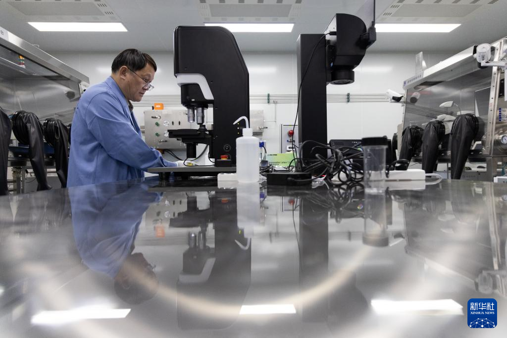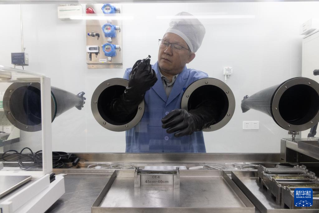 9月24日,中国科学院国家天文台研究员、嫦娥六号任务工程副总设计师李春来在月球样品实验室处理嫦娥六号月球样品。