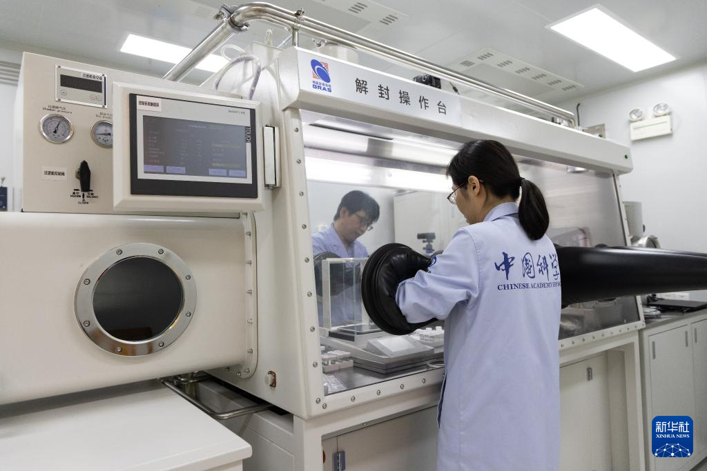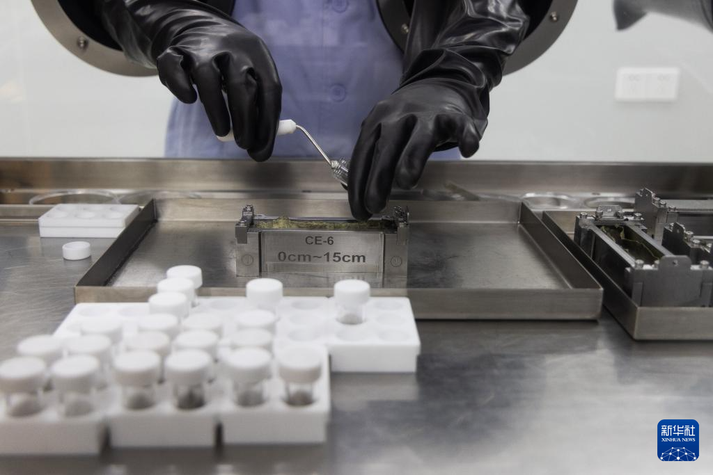 9月24日,科研人员在月球样品实验室的解封操作台上处理嫦娥六号月球样品。