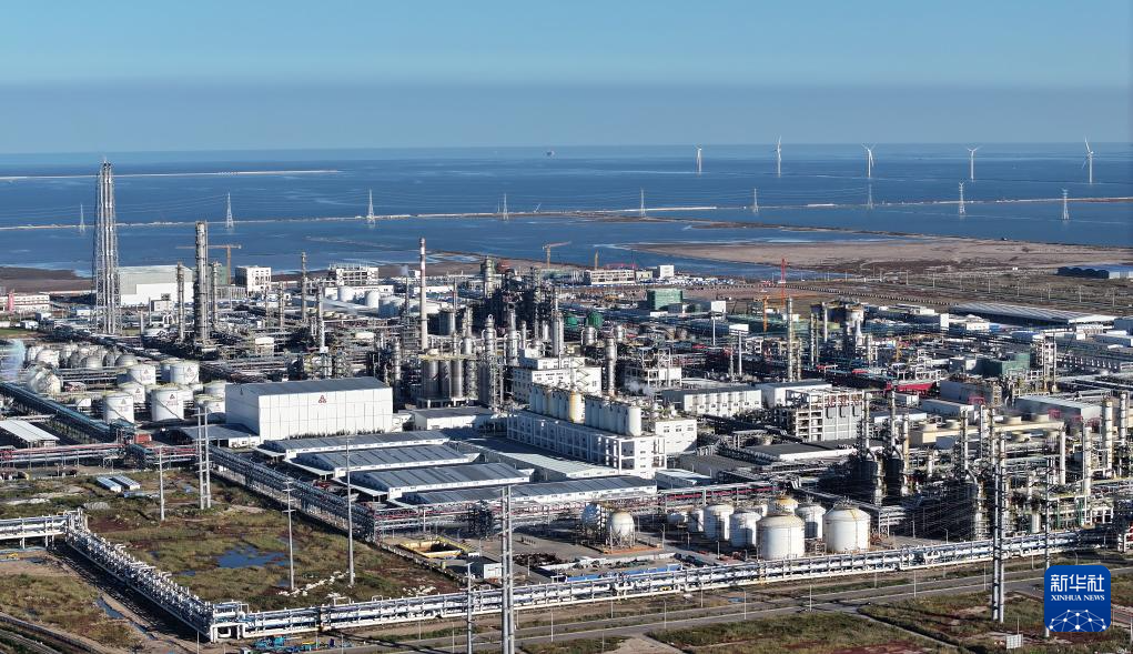 这是10月10日拍摄的位于天津南港工业区的中石化催化剂天津新材料生产基地(无人机照片)。
