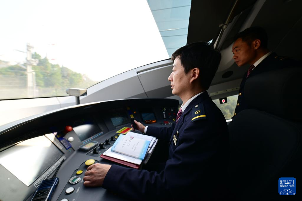 10月11日,高铁司机驾驶宣绩高铁首发列车G9298次行驶在线路上。
