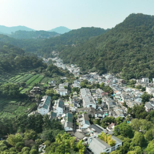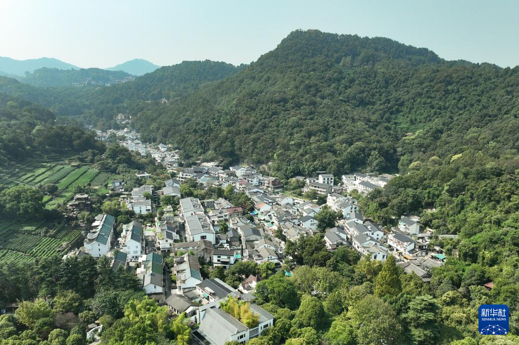 10月11日拍摄的桂花树簇拥的杭州满觉陇一带(无人机照片)。