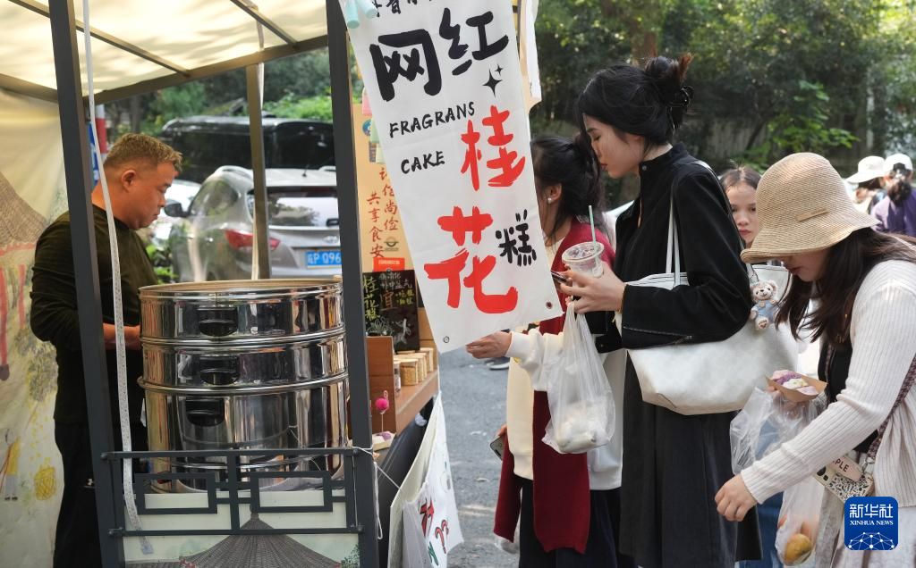 近日,浙江杭州迎来桂花盛花期,不少市民和游客来到满觉陇一带,呼吸桂香,品尝街头各式桂花制作的美食。桂花是杭州市花,据杭州市园林文物局统计,杭州全城分布有500余万株桂花树。