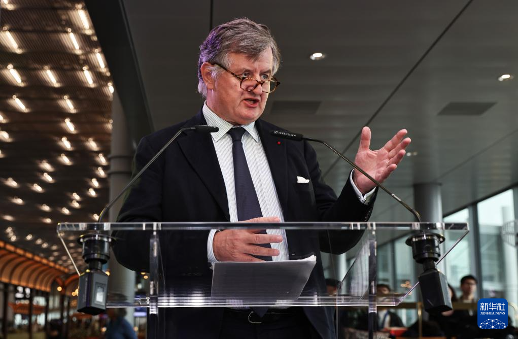 10月10日,在法国巴黎戴高乐机场,巴黎机场管理局负责人奥古斯丁·德罗马内在“中法金秋文化盛宴”活动上致辞。
