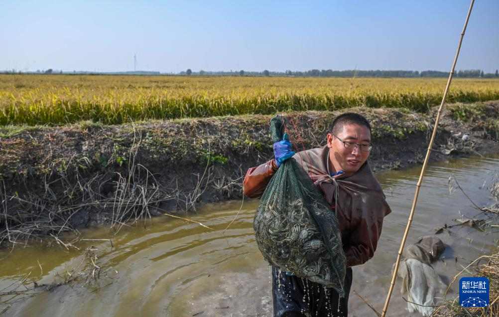 金秋时节,天津市宁河区大规模种植的玉米、水稻以及稻蟹混养模式下养殖的七里海河蟹进入丰收季。