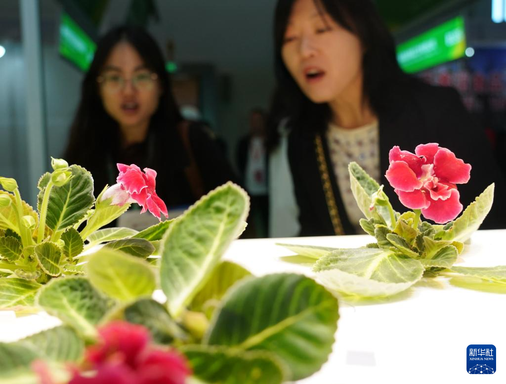 参观者在世界农业科技博览会现场了解无土水培技术(10月11日摄)。