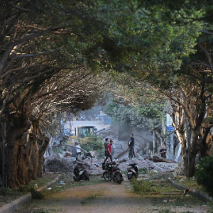 这是10月4日在黎巴嫩贝鲁特南郊拍摄的以色列袭击后的景象。