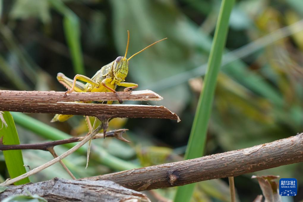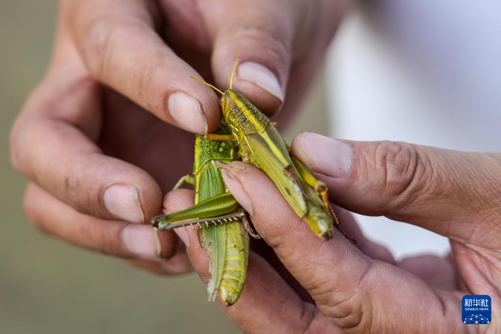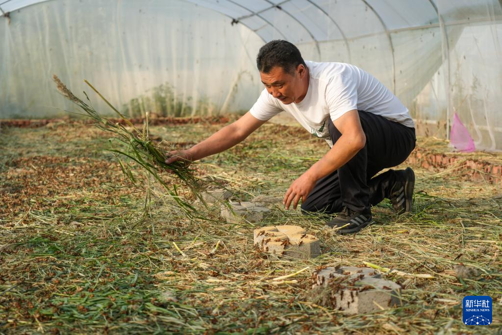 10月11日,院峪村养殖大棚内生长的蚂蚱。